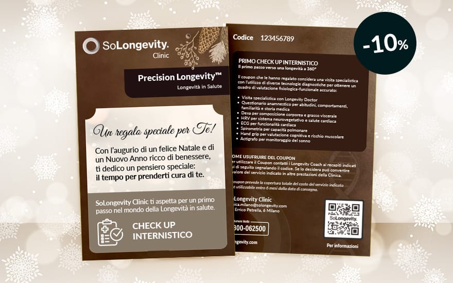 Con i coupon natalizi SoLongevity puoi regalare una delle valutazioni diagnostiche per la salute e la prevenzione tra le più richieste.